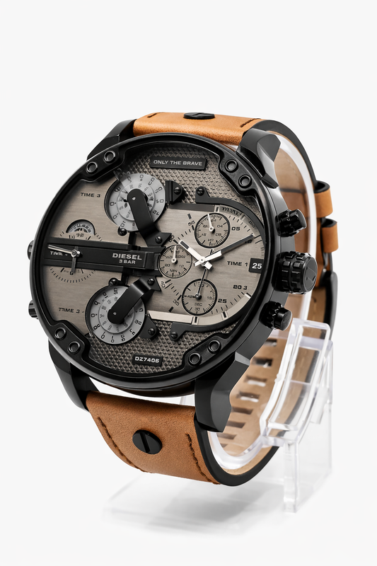 Diesel Mega Chief Black Dial Brown Leather